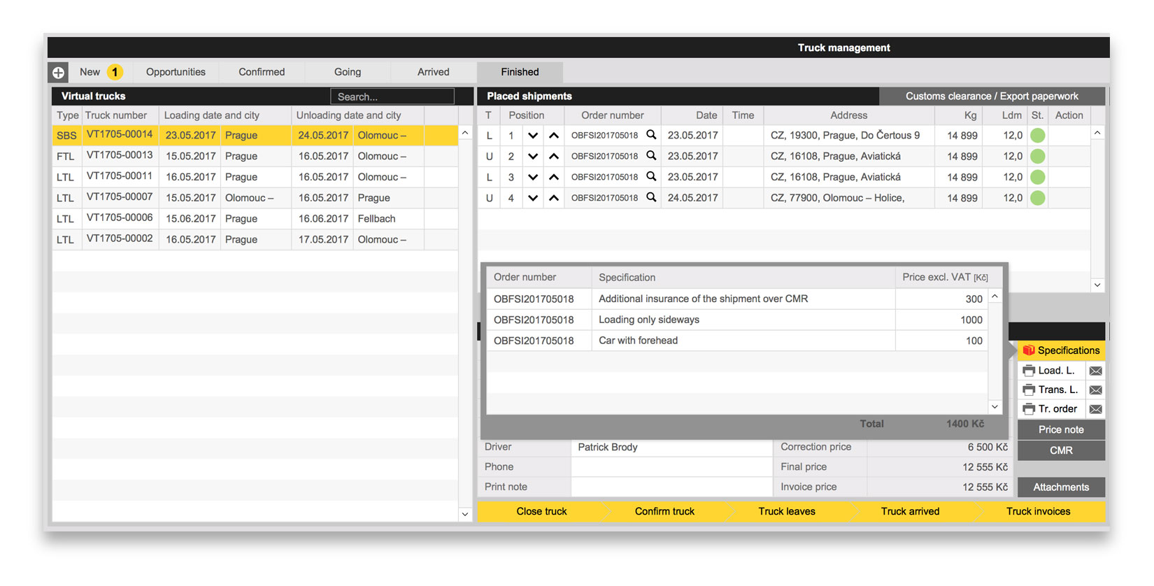 Spedisimo’s user interface for dispatchers is carefully designed to allow for quickly assigning shipments to trucks and order deliveries from transportation partners in order to deliver all accepted packages in the most cost effective way. Assigning shipments to virtual trucks makes it easy to simulate individual truck capacity utilization. Support for collaboration between dispatchers makes Spedisimo a great fit for logistics companies with dispatching teams.