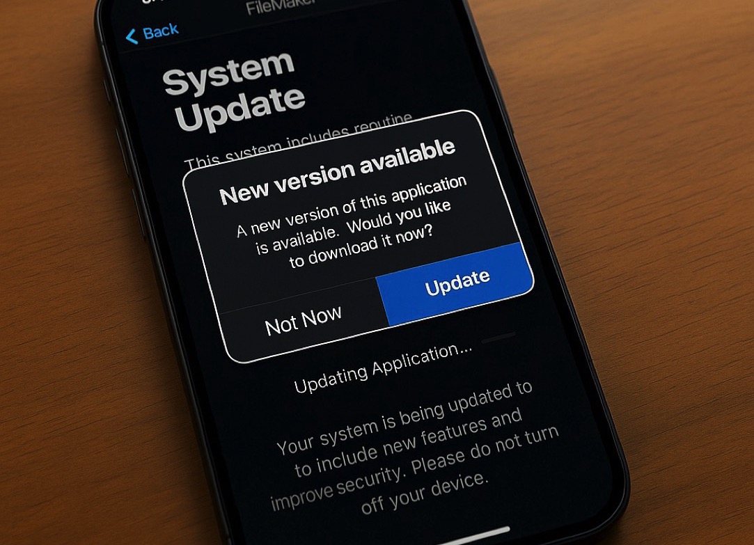 We developed an auto-update mechanism built directly into the FileMaker application itself. When the app launches, it automatically checks for an available version stored on an FTP or web server.