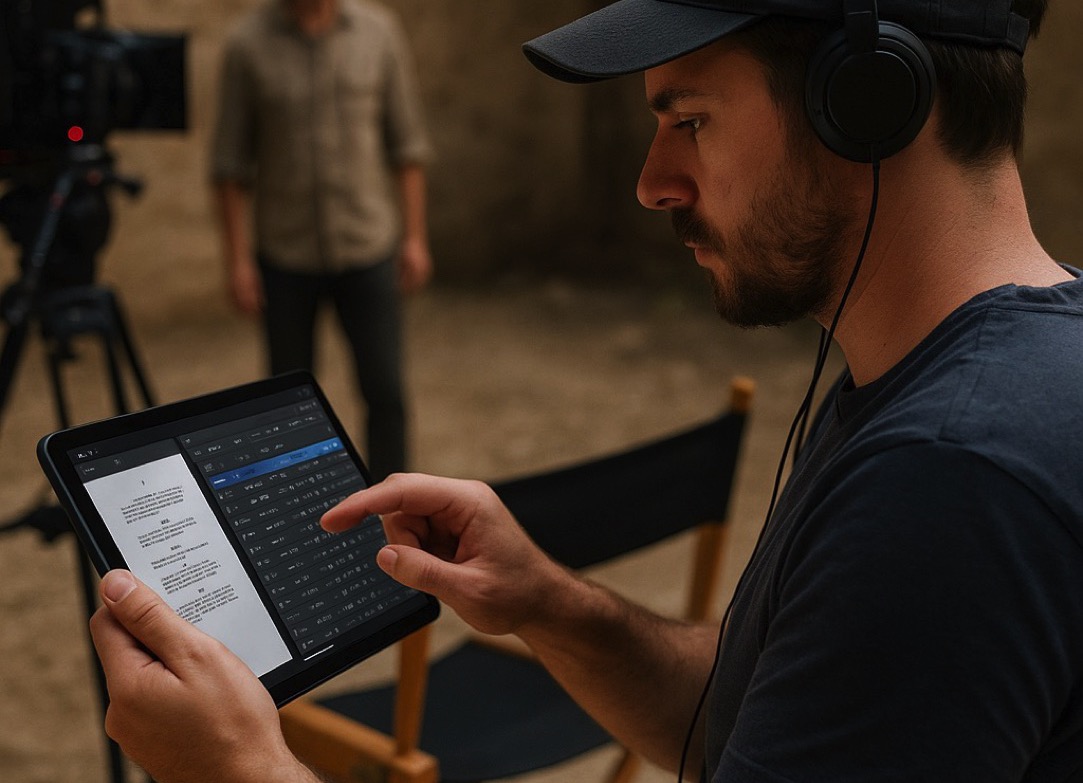 The production team of a film shoot needed to digitize the process of recording scripts and notes directly on set. Until then, they had been using handwritten paper “facing pages,” where the assistant director recorded notes for each shot—such as the director’s reactions, the usability of individual takes, or technical details about sound and camera. This workflow was slow, inefficient, and made subsequent information sharing between departments more difficult. The goal was to replace the paper-based system with a modern, interactive solution.