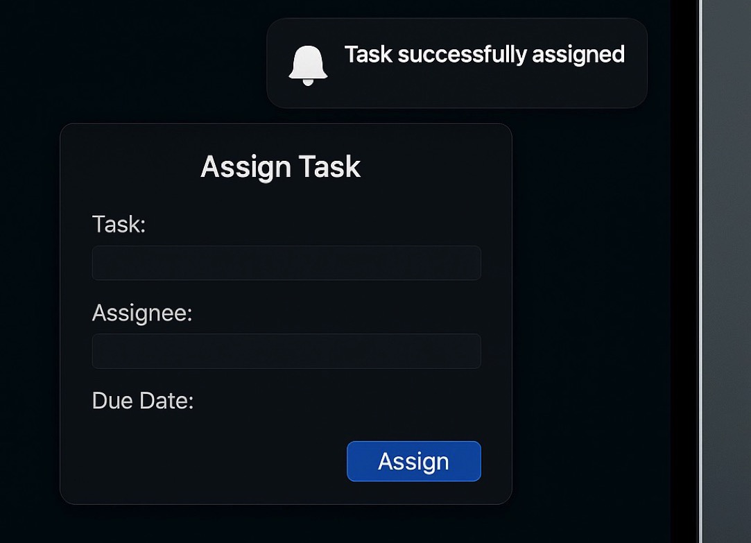 Users of an internal FileMaker application needed a faster and smoother process for assigning tasks, approving items, or changing record statuses. Originally, all confirmation messages for successful operations were displayed through dialog windows that had to be manually dismissed. This slowed down the work and disrupted the overall workflow.