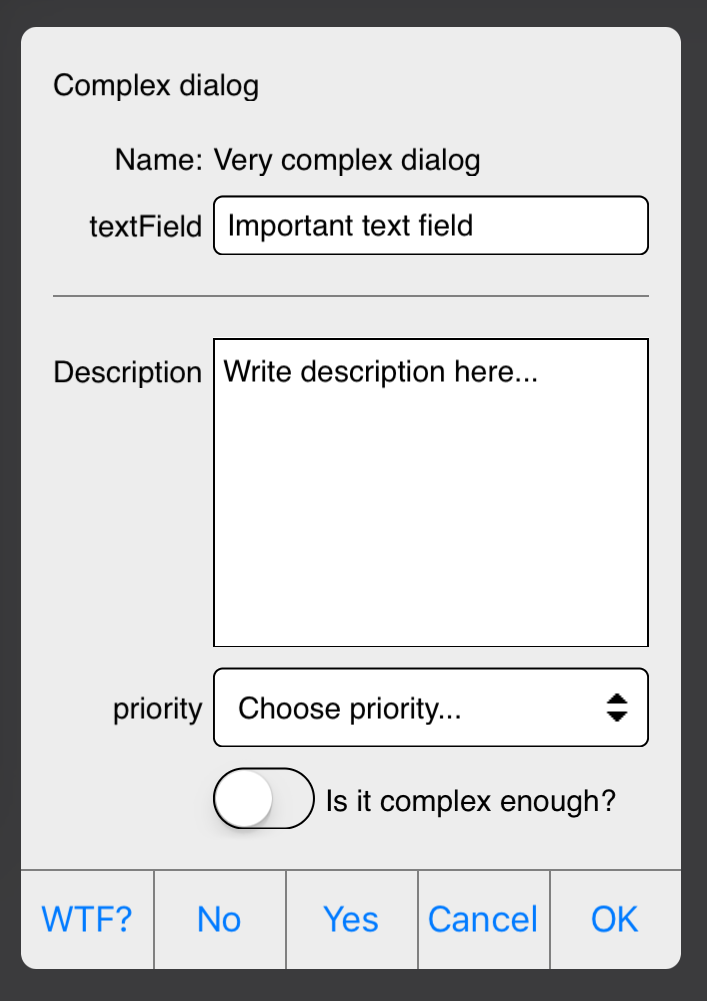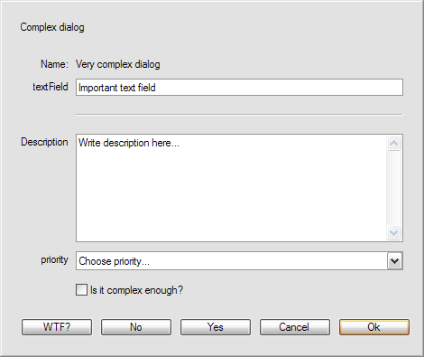 "dialog-min_width"Set next dialog minimal width in pixels. Prefer this parameter before the hard one ("dialog-width"). This parameter gives SimpleDialog layout mechanism more options to layout the dialog.