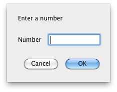 SDialog_InputDialog("" ; "" ; "caption¶" ; "Insert your initials" ; "text¶" ; "" ; "text¶" ; "" )